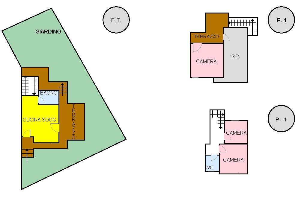 Al piano terra troviamo una luminosa zona giorno con cucina-soggiorno e un bagno con doccia finestrato, oltre a comodi spazi esterni ideali per pranzi all'aperto o momenti di relax.