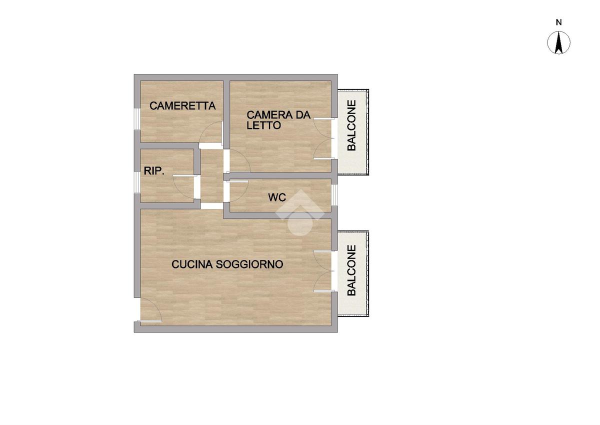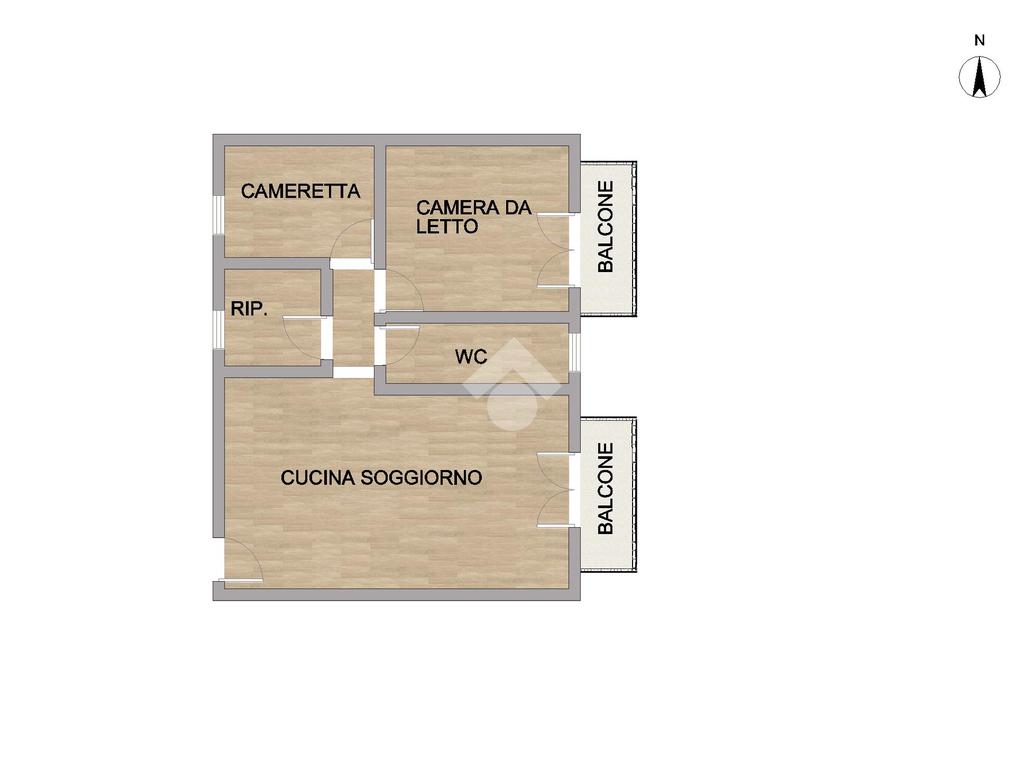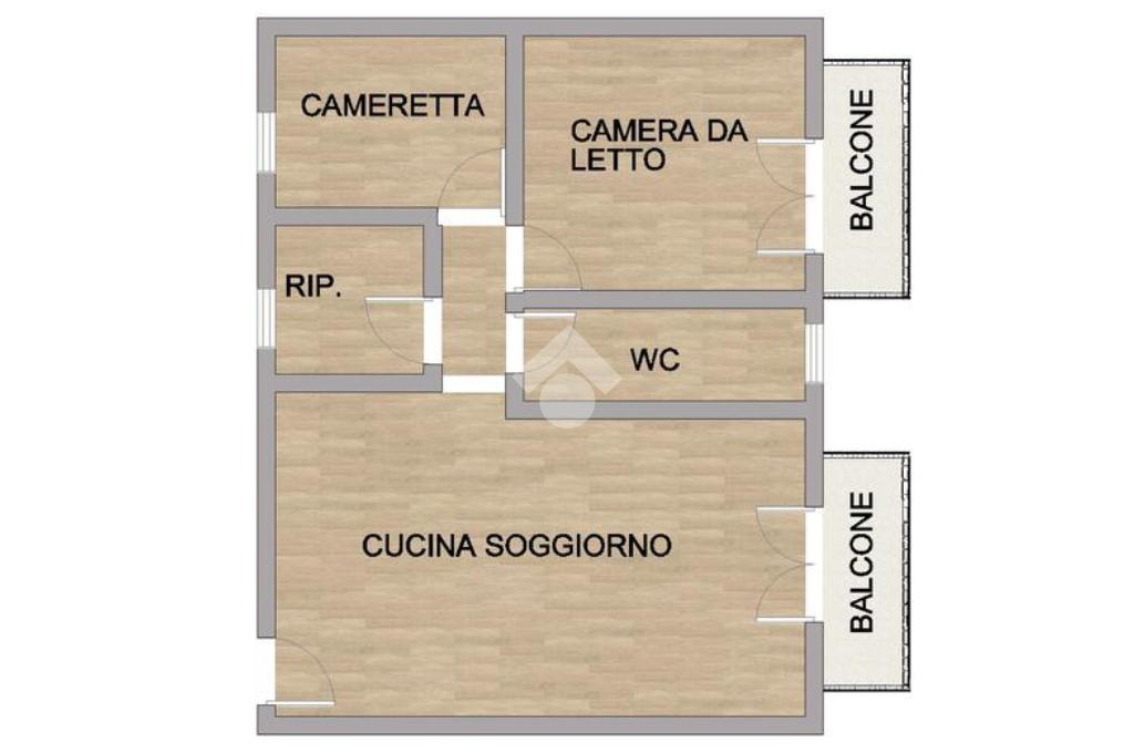 Appartamento di circa 80 mq ubicato al secondo piano con doppia esposizione, composto da ingresso su cucina soggiorno, una camera da letto, una cameretta, un bagno con doccia finestrato, ripostiglio e due balconi.