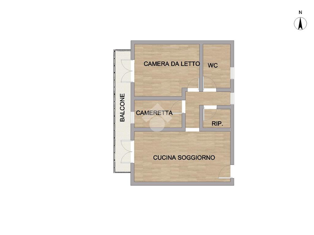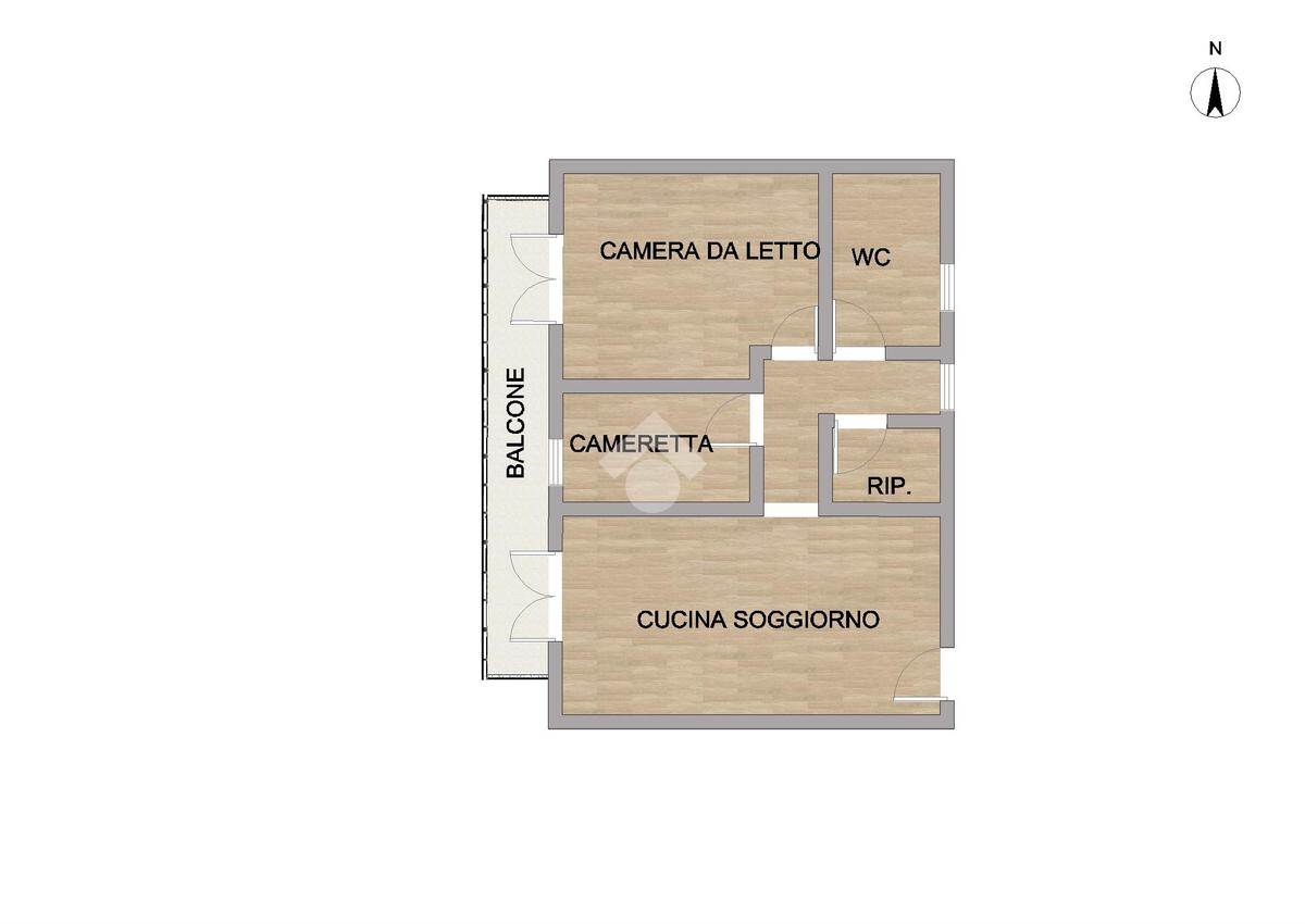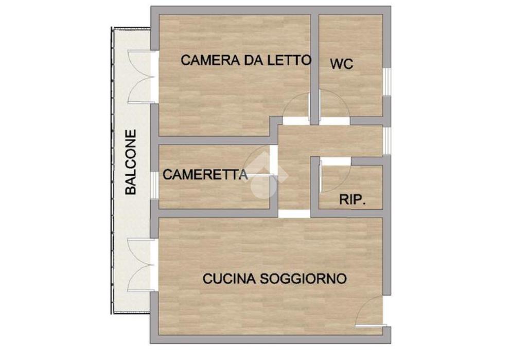 Appartamento di circa 70 mq ubicato al secondo piano con doppia esposizione, composto da ingresso su cucina soggiorno, una camera da letto, una cameretta, un bagno con doccia finestrato, ripostiglio e due balconi.
