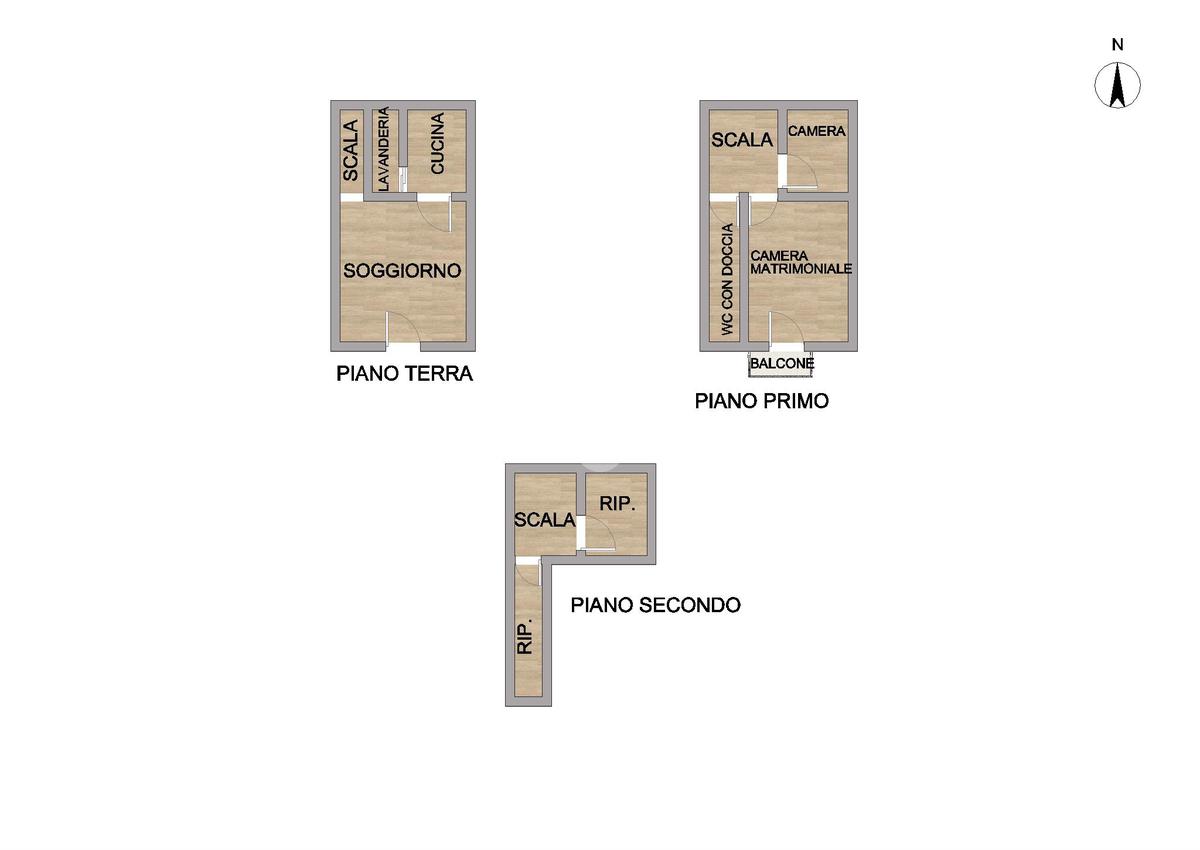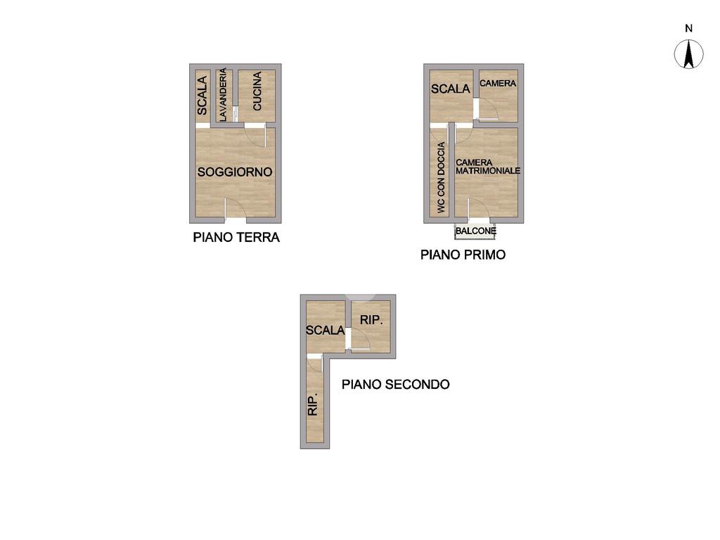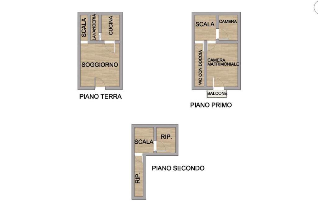 Al piano terra abbiamo accesso su comodo soggiorno, cucina e bagno lavanderia, primo piano che ci dà accesso ad una camera matrimoniale, una cameretta, un bagno con doccia ed un balcone, al secondo piano troviamo invece un ampio ripostiglio ed un locale tecnico. L'immobile è dotato di aria condizionata, assicurando un clima piacevole in ogni stagione.