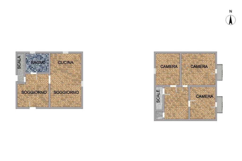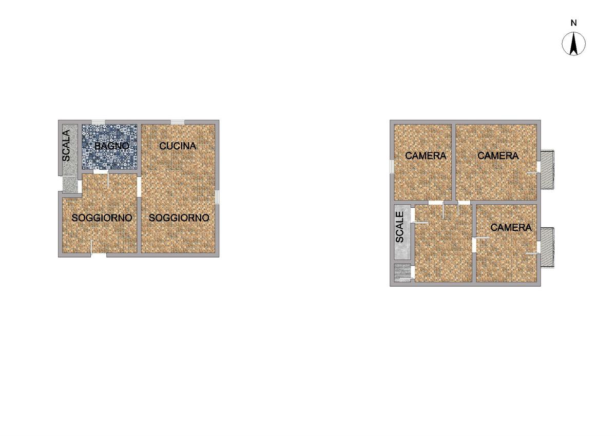 Al piano terra trovano posto un ampia zona cucina-soggiorno con soffitti con travi a vista; ed un bagno con doccia finestrato. Al primo piano, due ampie camere da letto con accesso sui relativi balconi, ed un'ulteriore camera finestrata.